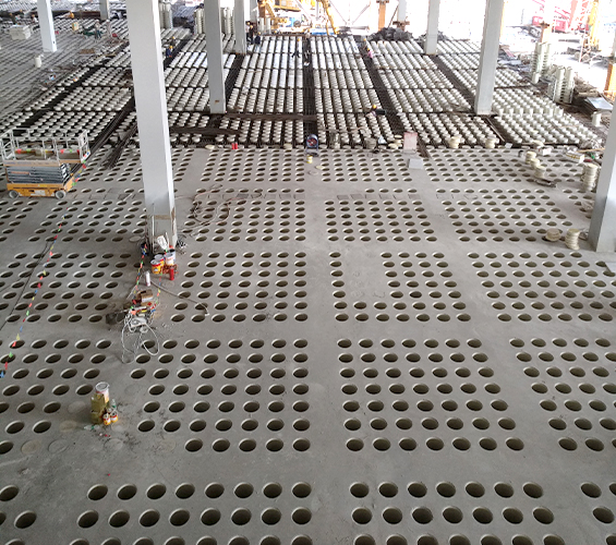 圓形華夫板的生產(chǎn)工藝具有以下優(yōu)勢:1.保證成孔準(zhǔn)確與樓板平整度采用的生產(chǎn)工藝,使用標(biāo)準(zhǔn)模板...